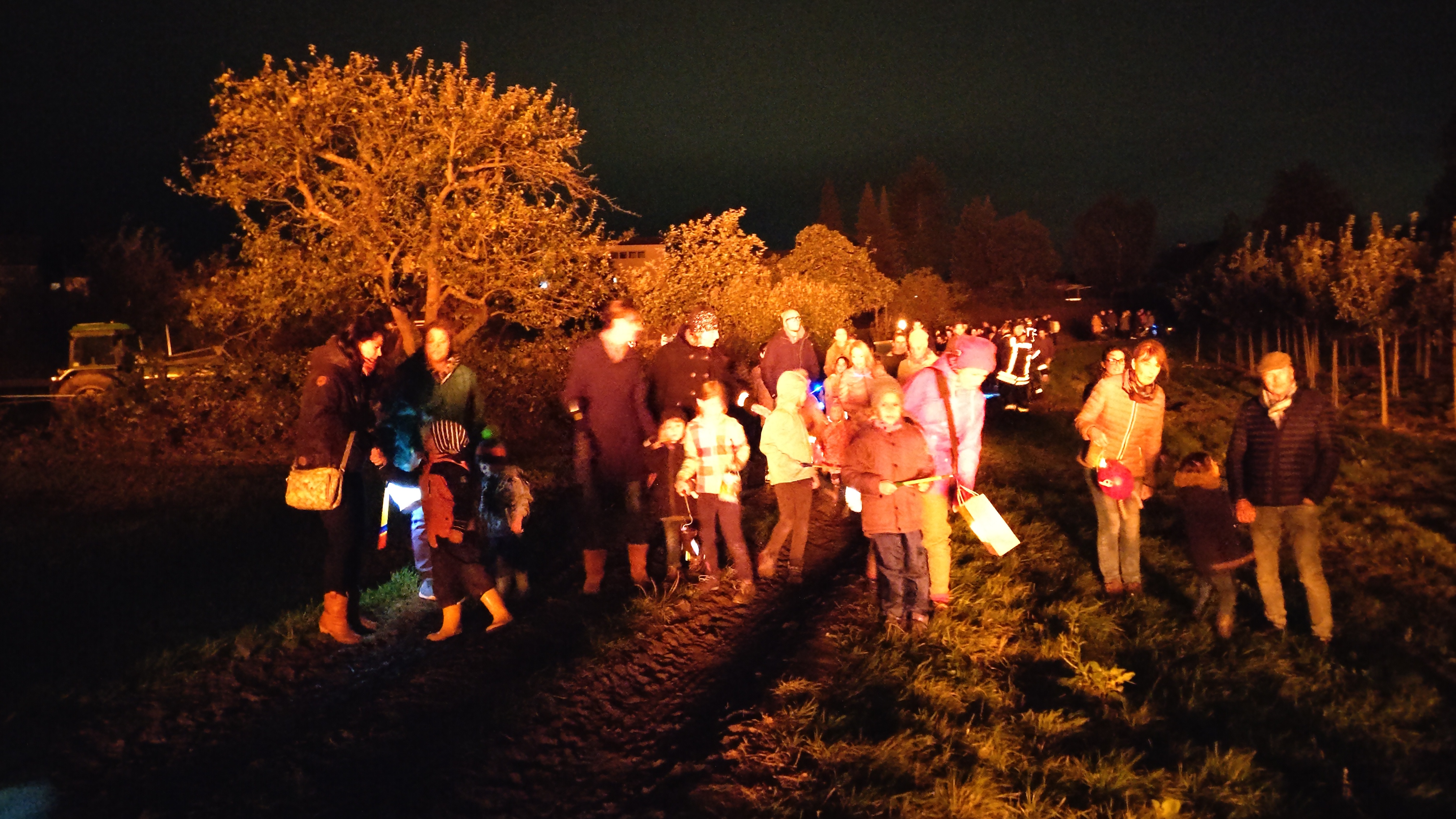 Erst hörte man aufgeregte kleine und große Füße trappeln, dann erleuchteten die Laternen. Die ersten Lieder erklangen, und vorneweg: Sankt Martin!