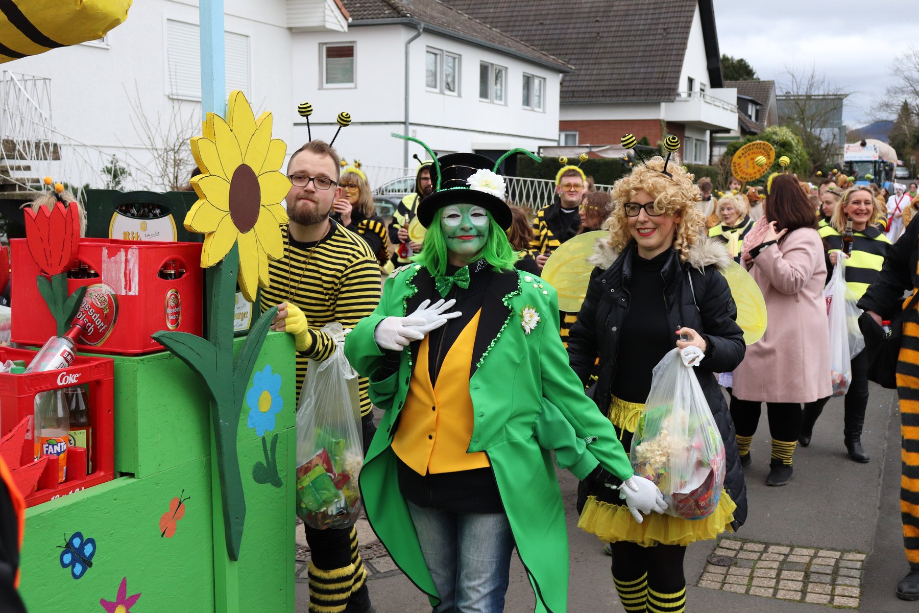 Im Karneval mitzugehen ist immer ein großer Spaß. Aber weit ist der Zugweg, und steil sind die Berge. Fliegen ist schöner, dachten sich fleißigen Bienen vom BTV Rauschendorf, und entwarfen flugs ein Bienen-Motto. So staunten nicht wenige, als beim Karnevalsumzug ein lautes Summen und Brummen zu hören war und ein ganzer Bienenschwarm, samt Bienenstock und Imker, vorbei surrten. “Und wer von den ganzen Schönheiten ist nun die Bienenkönigin?” fragte ein staunender Zuggast. Nun ja, da gibt es unterschiedliche Meinungen, wer bei “Rauschendorf’s Next Bienen-Model” denn nun gewonnen hat. Der Verfasser dieser Zeilen hat seine Wahl getroffen. Wer sich hingegen noch unsicher ist, dem sollen die nun folgenden Fotos eine Entscheidungshilfe sein. Und da wir nicht hinter dem Berg, sondern auf dem Berg wohnen, dürfen natürlich auch die honigsüßen Bienen-Kerle gewählt werden!